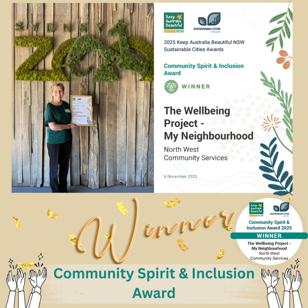 We are incredibly proud to celebrate our recent win at the 2025 Keep Australia Beautiful NSW Sustainable Cities Awards, where The Wellbeing Project โ My Neighbourhood was honoured with the Community Spirit & Inclusion Award.