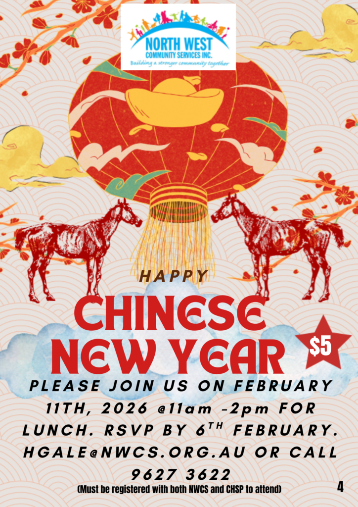 What's On @ NWCS Click HERE to download our What’s On flyer WHAT’S ON – COMMUNITY PROGRAMS, SPECIAL EVENTS AND MORE! COMMUNITY CONNECTIONS MENTAL HEALTH AND WELLBEING AGEING, DISABILITY & WELLNESS Click HERE to view or download our Ageing, Disability & Wellness Calendar Feb- May 2026 WHAT'S ON AT ELARA IN-REACH SERVICES Click HERE to download our What’s On flyer